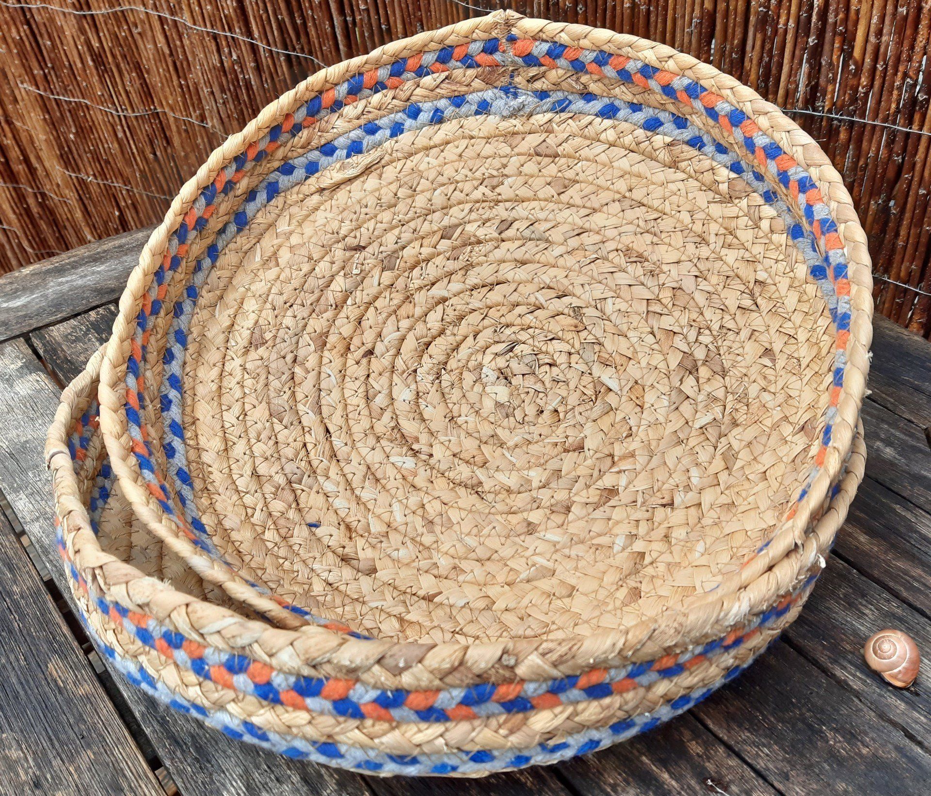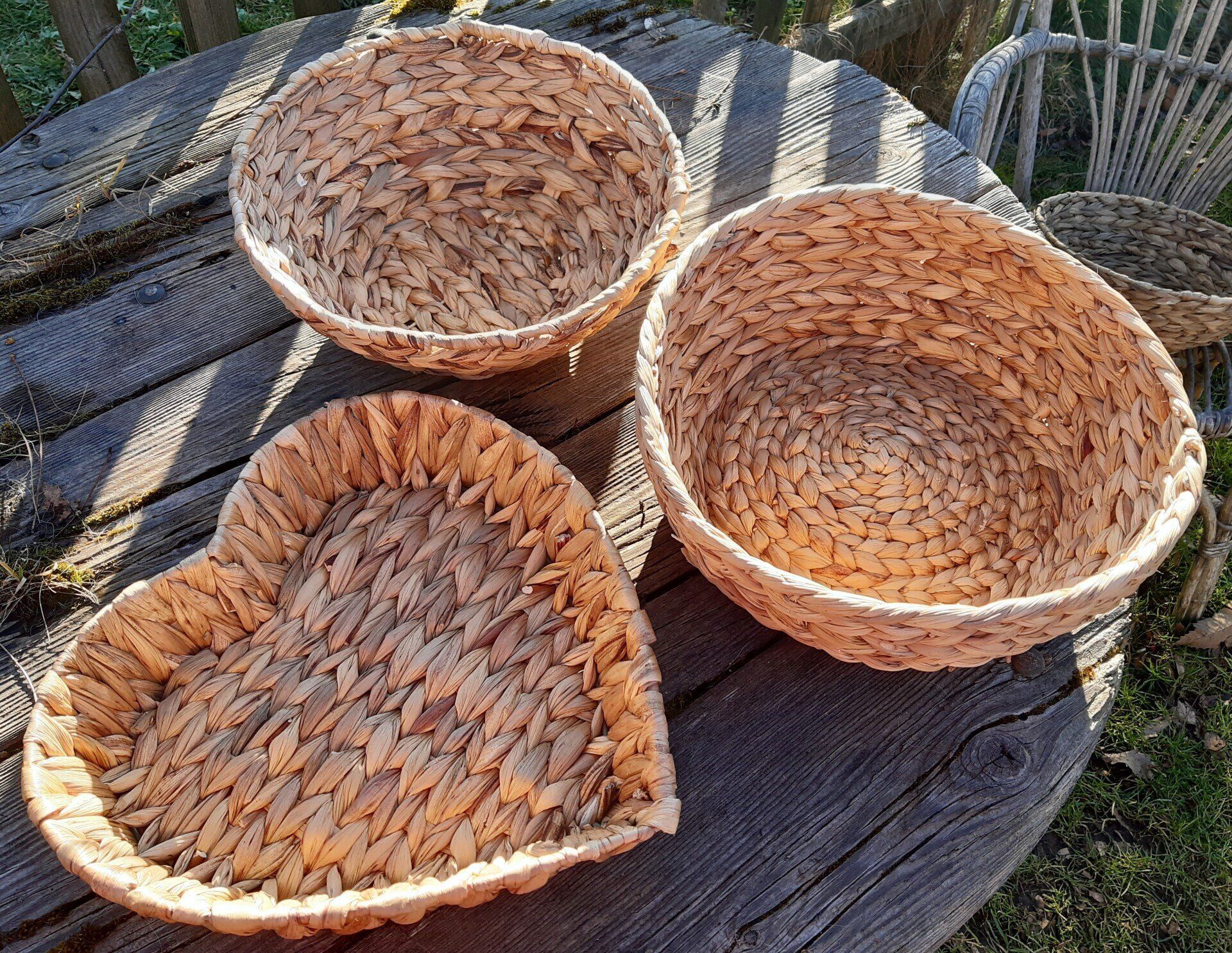Diese Bastkörbchen sind ebenfalls für den Außenbereich geeignet und haben einen Durchmesser von 30 cm.